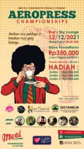 AEROPRESS CHAMPIONSHIP ini akan dilaksanakan pada Hari Minggu, Tanggal 12 Desember 2021, penjurian dan pengumuman pemenang juga akan dilaksanakan di hari dan tanggal tersebut. Untuk tempat pelaksanaan AEROPRESS CHAMPIONSHIP ini dilaksankan di BUDS Sky Lounge Meotel Purwokerto by Dafam dari pukul 08.00 WIB sampai dengan pukul 20.00 WIB. Cara untuk mengikuti AEROPRESS CHAMPIONSHIP ini adalah dengan melakukan pendaftaran, biaya pendaftarannya sebesar Rp 350.000 dengan benefit Kaos, Sertifikat dan Kopi. Pendaftaran langsung bisa menghubungi panitia kami Mas Widi dengan No HP 0812 2523 5245.