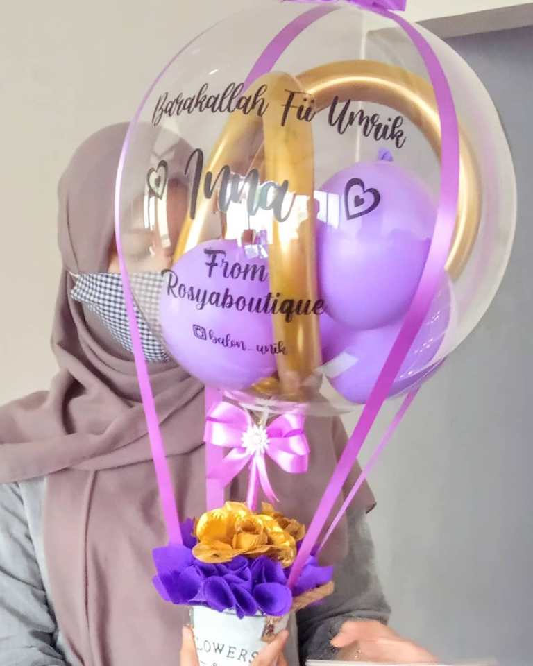 “Jadi gak cuma balon, tapi ada isiannya berupa snack atau bunga sesuai permintaan,” katanya.