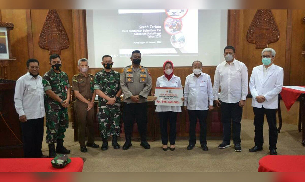 fokusbanyumas.id, Purbalingga – Hasil penggalangan Bulan Dana PMI 2021 Kabupaten Purbalingga diserahkan oleh Kapolres Purbalingga selaku Ketua Panitia kepada Bupati Purbalingga, Rabu (19/1) di OR Graha Adiguna. Hasil bersih yang diserahkan sebesar Rp 898.360.000.