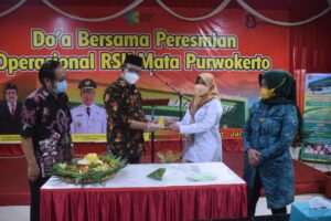 fokusbanyumas.id, Banyumas – Bupati Banyumas Achmad Husein bersama Ketua DPRD Kabupaten Banyumas menghadiri tasyakuran mulai beroperasinya Rumah Sakit Khusus Mata Purwokerto. Meski telah dibangun Rumah Sakit, secara administrasi pelayanan masih menggunakan sistem Balai Kesehatan Mata Masyarakat.
