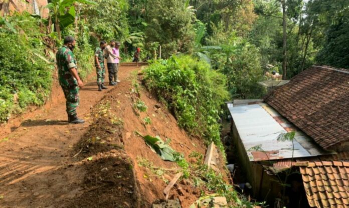 fokusbanyumas.id, Wonosobo – Hujan lebat yang mengguyur Wilayah Kabupaten Wonosobo selama beberapa hari terakhir membuat senderan jalan di Desa Dadapgede, Kecamatan Wadaslintang Kabupaten Wonosobo longsor dan menimpa sebuah rumah warga.