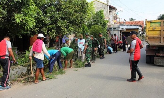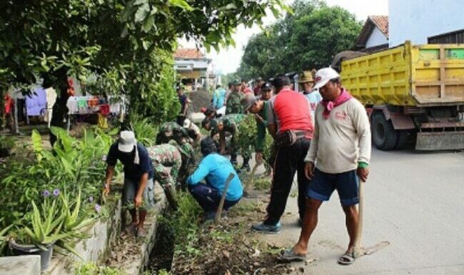 fokusbanyumas.id, Brebes – Warga masyarakat Desa Dukuhwringin, Kecamatan Wanasari, Kabupaten Brebes, Jawa Tengah, bersama anggota Koramil 03 Wanasari Kodim 0713 Brebes dan juga Polsek Wanasari, bergotong-royong membersihkan saluran air di area pemukiman warga, Rabu (24/11/2021).