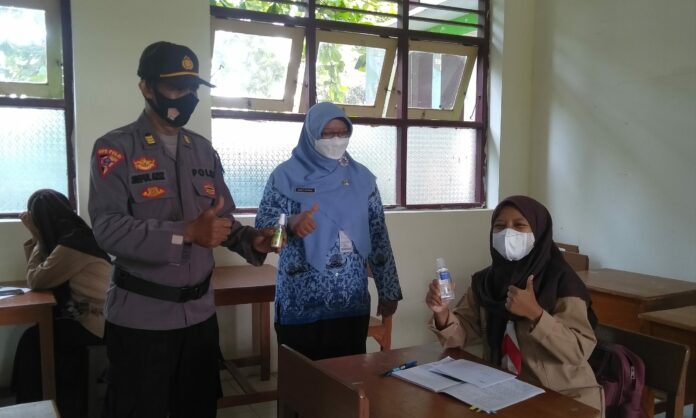 “Hasil monitoring Satgas Covid-19 tiap kelas melakukan pembelajaran hanya 25% sampai dengan 50%. Selanjutnya wajib mengenakan masker dan cuci tangan sebelum memulai pembelajaran,” jelas AKP Saiful Aziz.