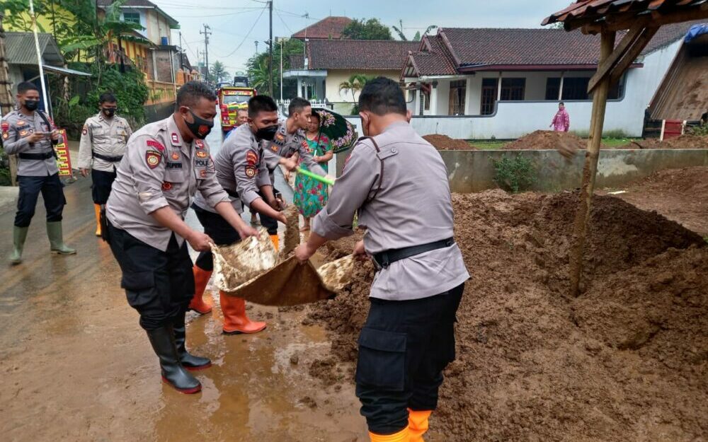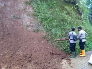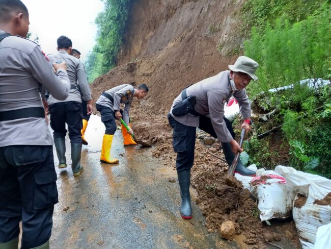 Kapolresta Banyumas Kombes Pol M. Firman L. Hakim, S.H., S.I.K., M.Si., melalui Kasat Samapta AKP Agus Amjat Purnomo, S.H., M.M., menyampaikan anggotanya yang dipimpin oleh Iptu Sudar, S.H., selaku Kanit Dalmas melakukan pembersihan material tanah longsor yang menimpa jalan.