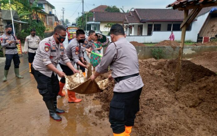 fokusbanyumas.id, Banyumas – Satuan Samapta Polresta Banyumas Polda Jawa Tengah melakukan pembersihan material tanah longsor di wilayah RT 02 RW 06 Desa Gununglurah, Kecamatan Cilongok, Kamis (18/11).