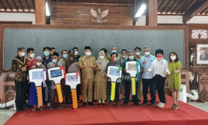 fokusbanyumas.id, Kebumen – Rotary Internasional yang bekerja sama dengan Rotary Club Yogya Tugu dan Rotary Club Walet Kebumen menyerahkan 5 kunci secara simbolis di pendopo rumah dinas bupati Kebumen, Senin (25/10/21), dari lima rumah tidak layak huni (RTLH) yang berhasil direhab di Kebumen.