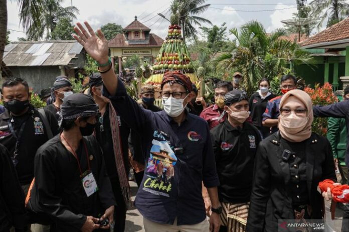 fokusbanyumas.id, Banyumas – Menteri Pariwisata dan Ekonomi Kreatif (menparekraf) Sandiaga Salahudin Uno mengunjungi Desa Wisata Cikakak, Kecamatan Wangon, Kabupaten Banyumas, Rabu (13/10/2021). Desa Cikakak �merupakan satu dari 50 desa wisata terbaik dalam ajang Anugerah Desa Wisata Indonesia (ADWI) 2021.