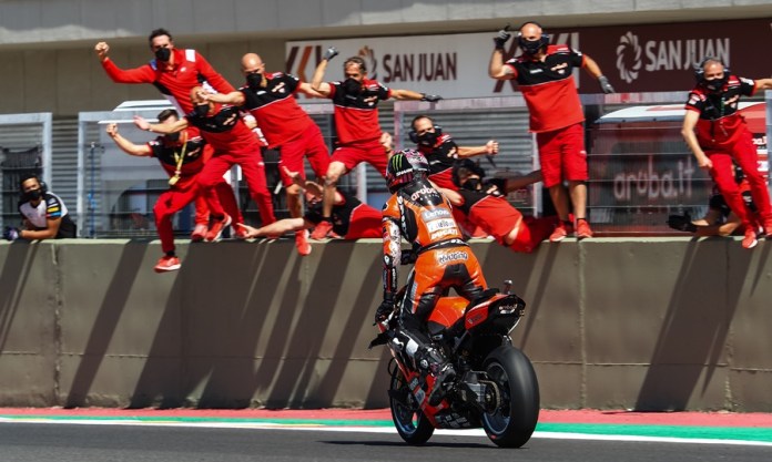 “Jika Anda tidak bisa mengalahkan mereka, bergabunglah dengan mereka. Itulah yang saya lakukan dan berhasil mengalahkan mereka juga. Saya tidak sabar untuk menonton balapannya kembali! Saya tidak ingat apa pun yang terjadi! Itu seperti Bassani, Jonny, Toprak dan kemudian saya. Itu terlihat sangat bagus dari sudut pandang saya. Saya mendorong batas saya untuk memenangkan balapan,” imbuh Redding.