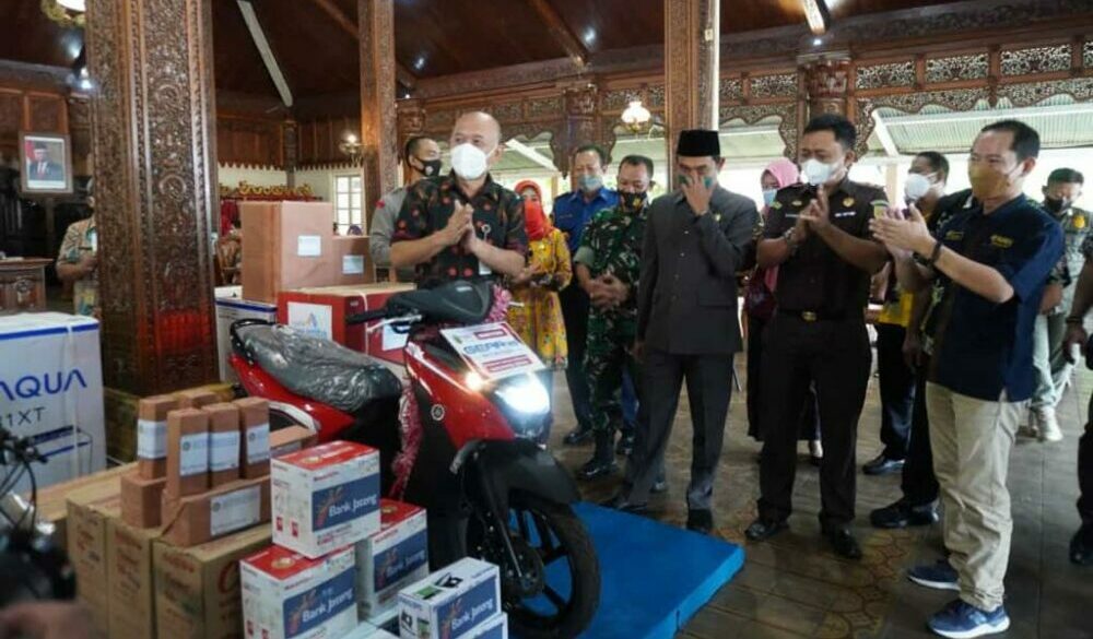 Berbeda dari vaksinasi anak, untuk menarik minat warga Jepara, Bupati Jepara Dian Kristiandi meluncurkan program vaksinasi berhadiah di Pendapa RA Kartini, Kamis (27/1/2022). Setiap warga yang vaksin akan diberikan kupon, dengan hadiah utama satu unit sepeda motor.