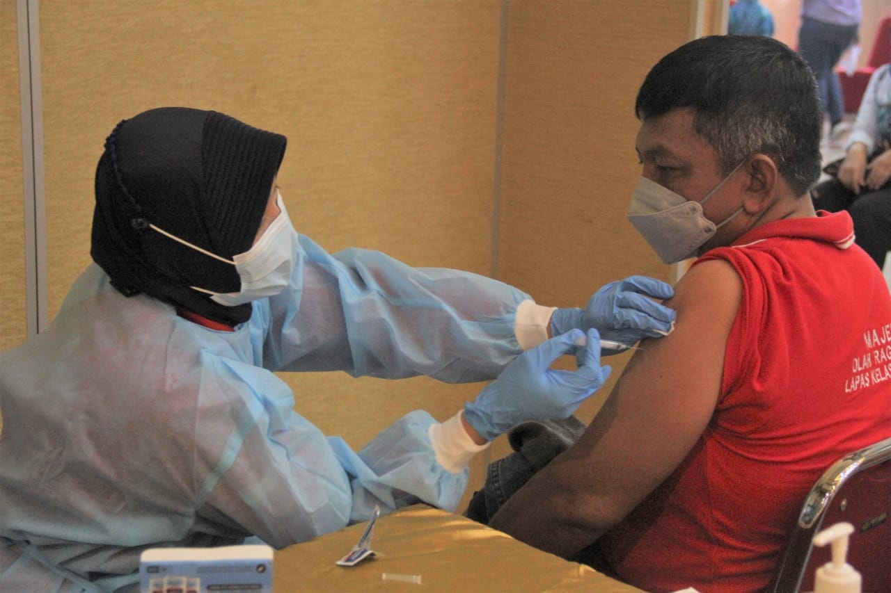 Vaksinasi booster merupakan sebagai salah salah satu bentuk ikhtiar untuk meningkatkan imunitas dan menurunkan tingkat keterpaparan virus varian baru sekaligus mendukung upaya pemerintah pada pencegahan Covid-19. (Humas Kemenkumham Jateng)