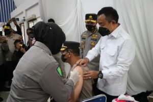 “Tadi Bupati melaporkan vaksinasi total sudah mencapai 80% lebih, dan untuk anak-anak juga sudah diatas 80%. Tapi kita jangan terlena dan lalai mentang-mentang sudah vaksin, apalagi ada varian baru, Omicron yang lebih cepat menular,” imbau Komjen Pol Agung.