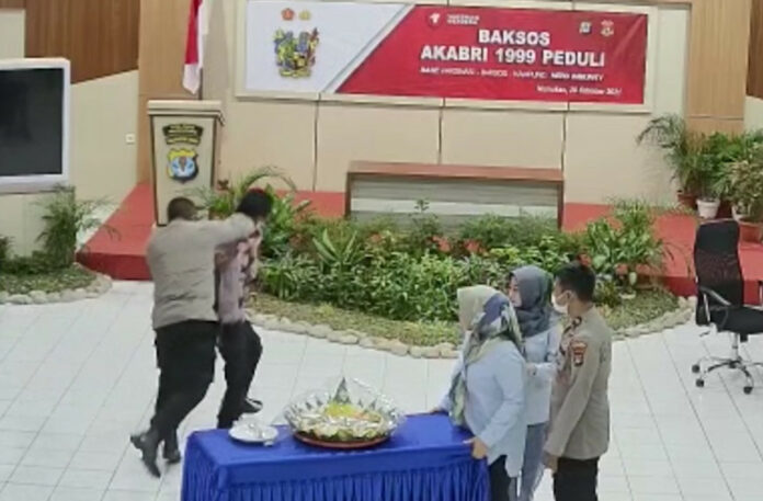 Peristiwa ini terekam CCTV dalam sebuah ruangan diduga Aula Polres Nunukan.